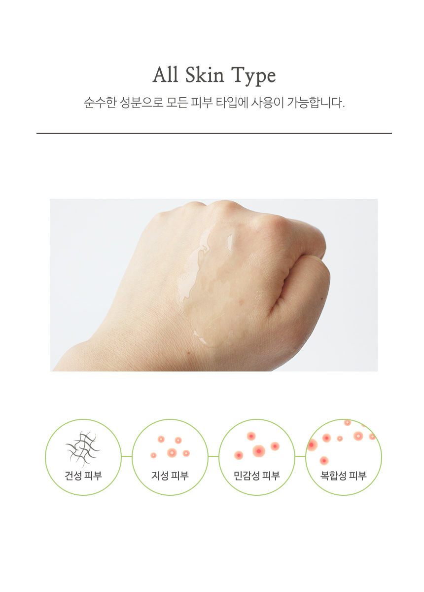 모든 피부에 사용이 적합한 토너로 수분밸런스를 유지시켜 맑고 투명하며 촉촉한 피부로 가꾸어줍니다.