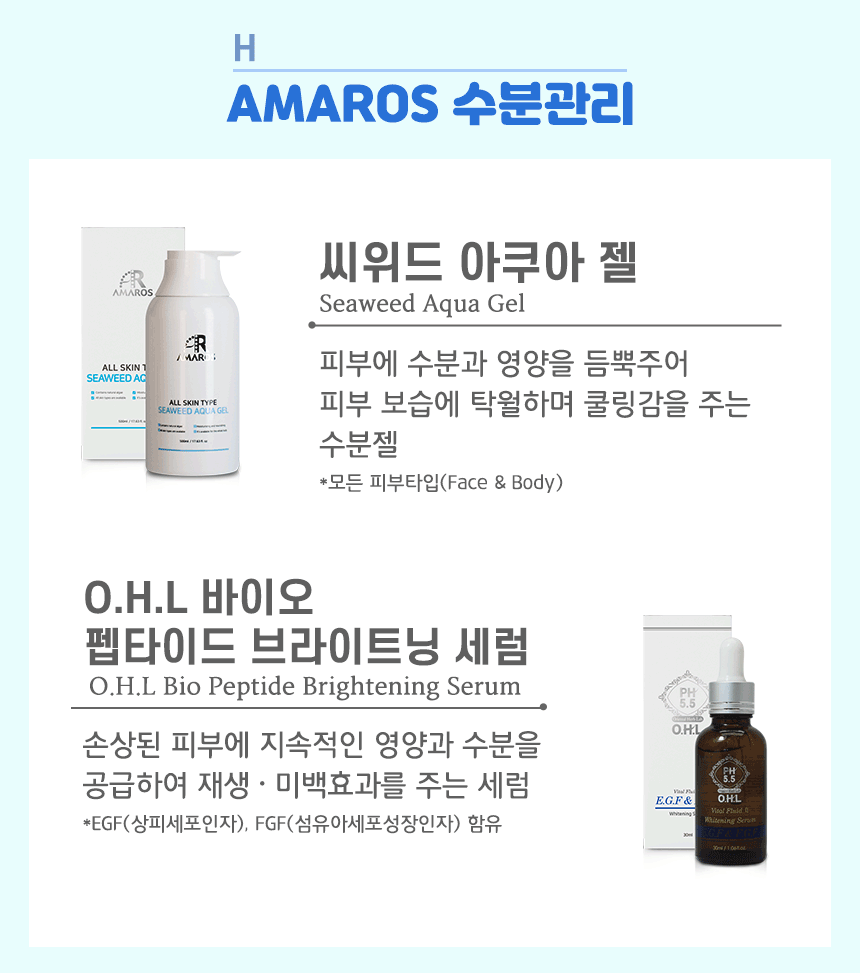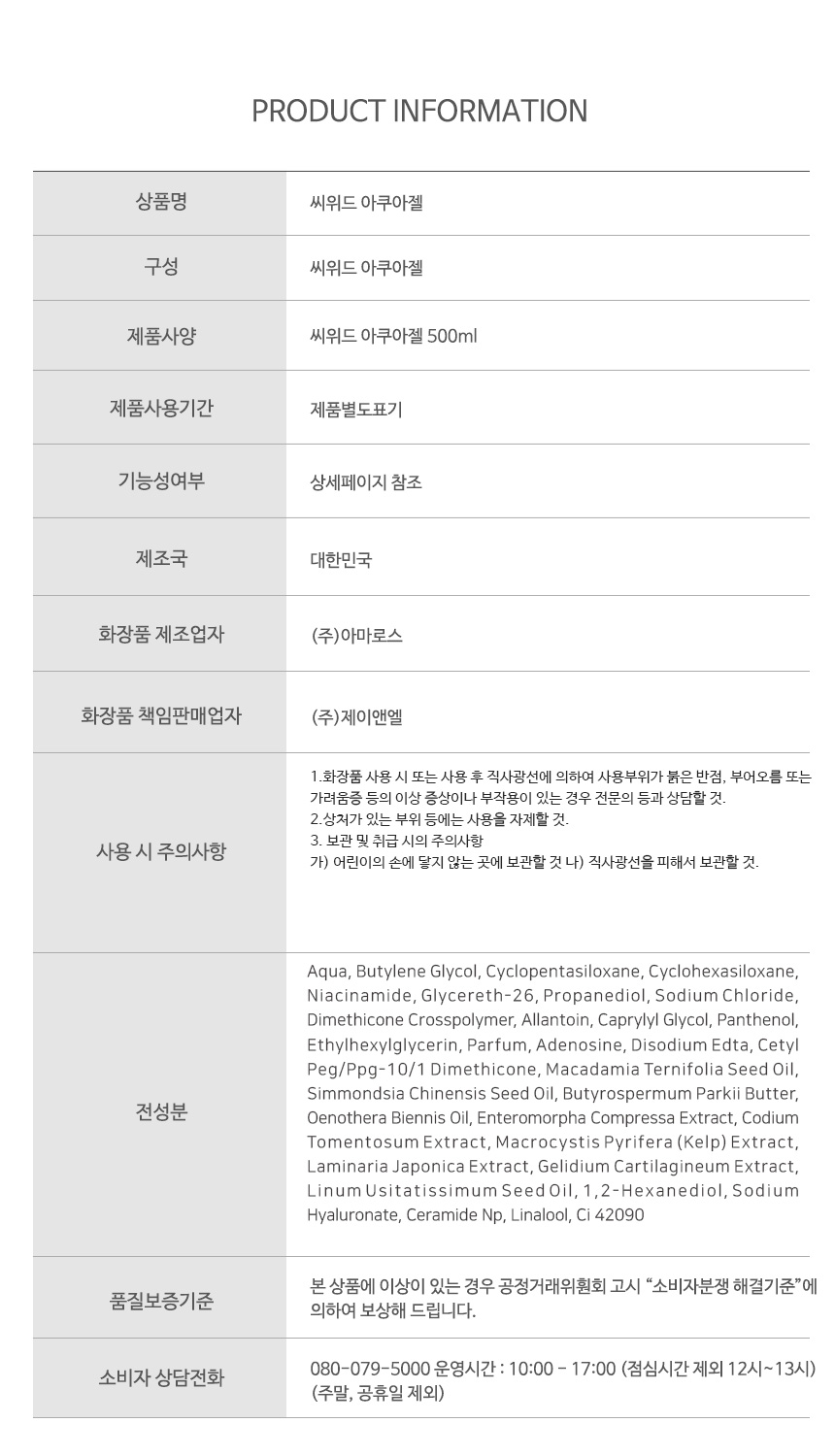 씨위드 아쿠아젤 -수분과 영양을 듬뿍주어 피부 보습에 탁월하며 모든 피부에 사용가능한 젤입니다. 문지르면 물방울이 맺히며 흡수되고 시원한 쿨링 효과와 보습력이 탁월한 마사지 크림입니다.