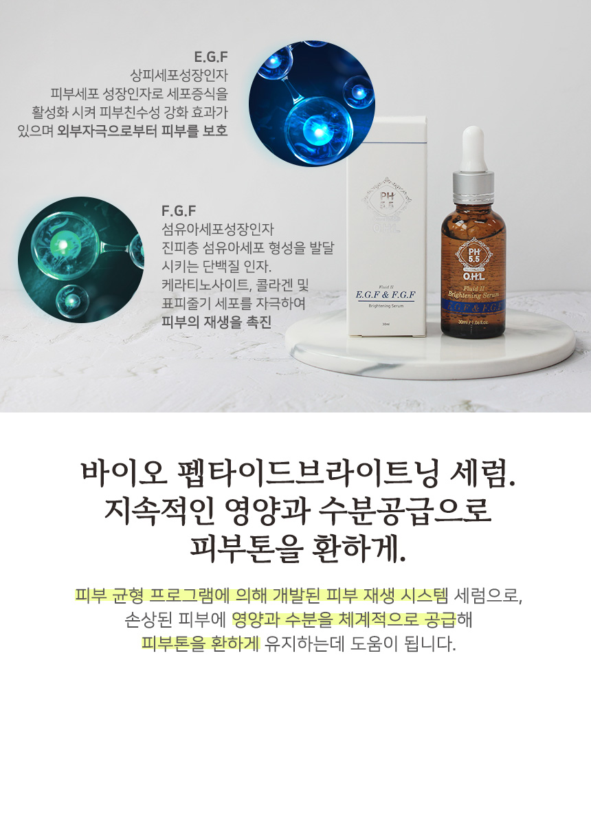 바이오 펩타이드 브라이트닝 세럼 - 손상된 피부에 영양과 수분을공급하여 촉촉하며 산뜻하고 투명한 피부로 가꾸어 줍니다.