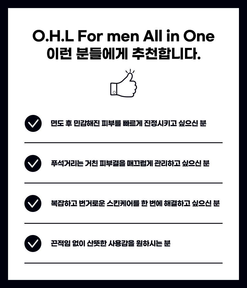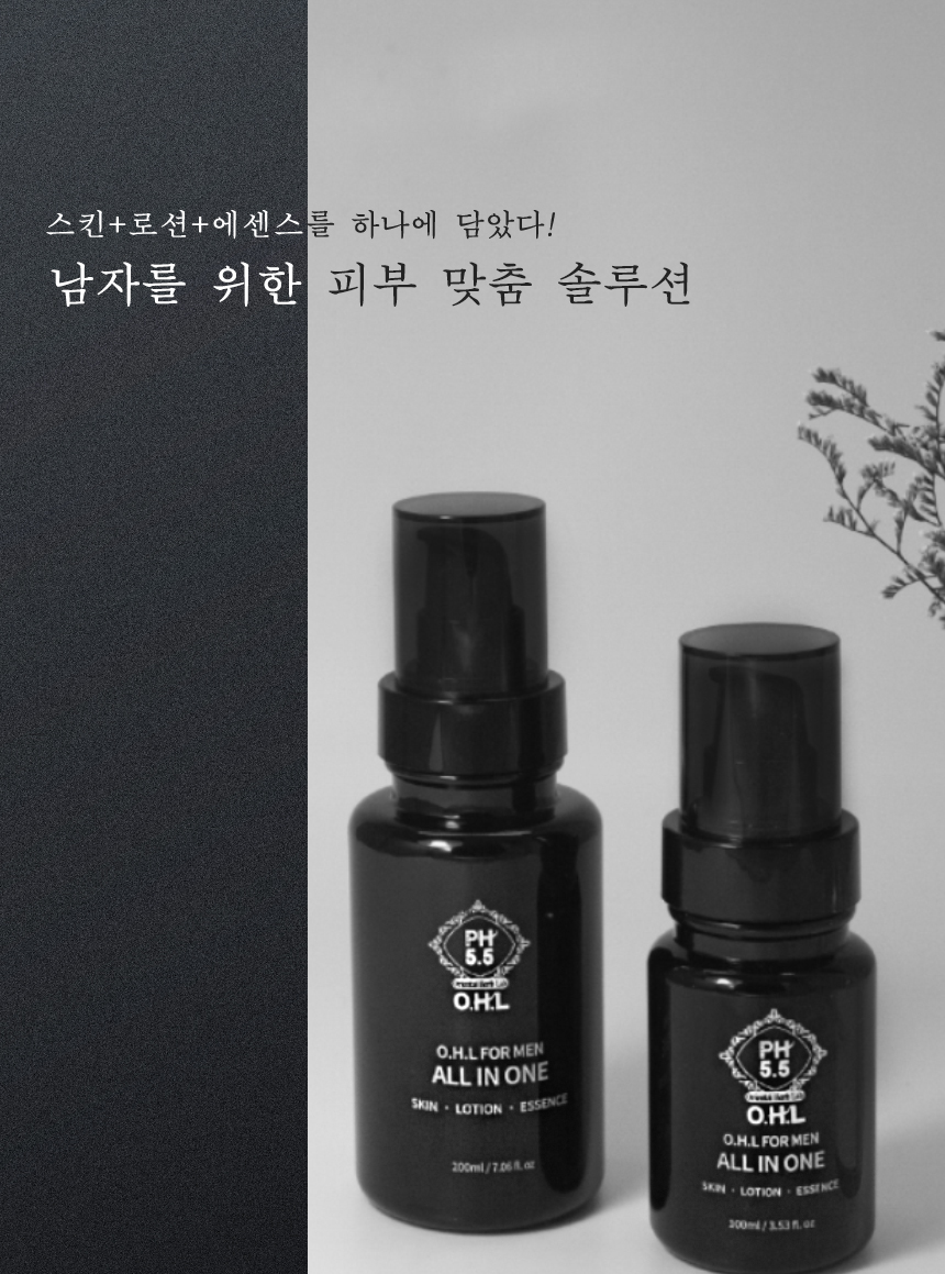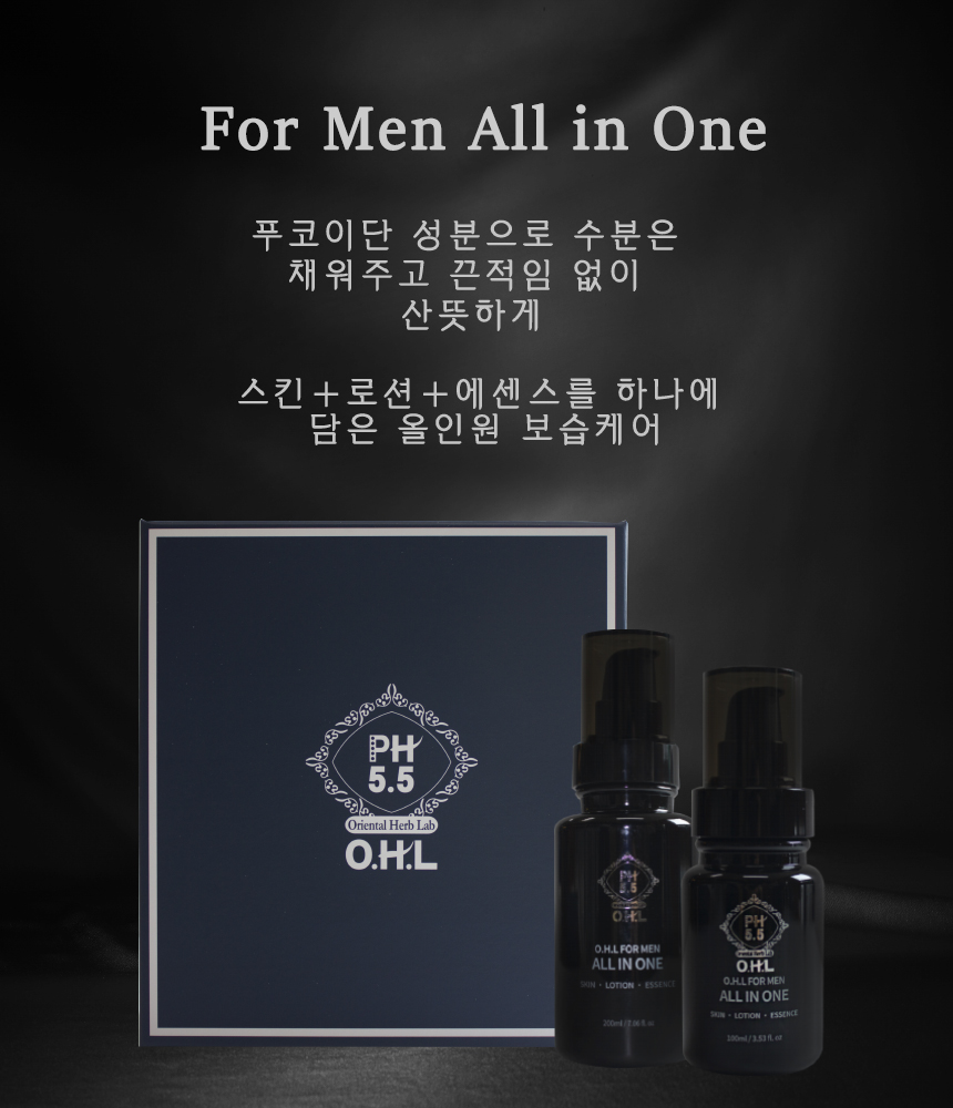 포맨 올인원 - 스킨, 로션, 에센스가 하나로 어우러져 모든 피부타입에 사용할 수 있는 멀티케어 제품으로 외부 자극과 면도 등으로 민감하고 거칠어진 피부에 수분을 공급하여 촉촉하고 건강한 피부로 가꿔줍니다.