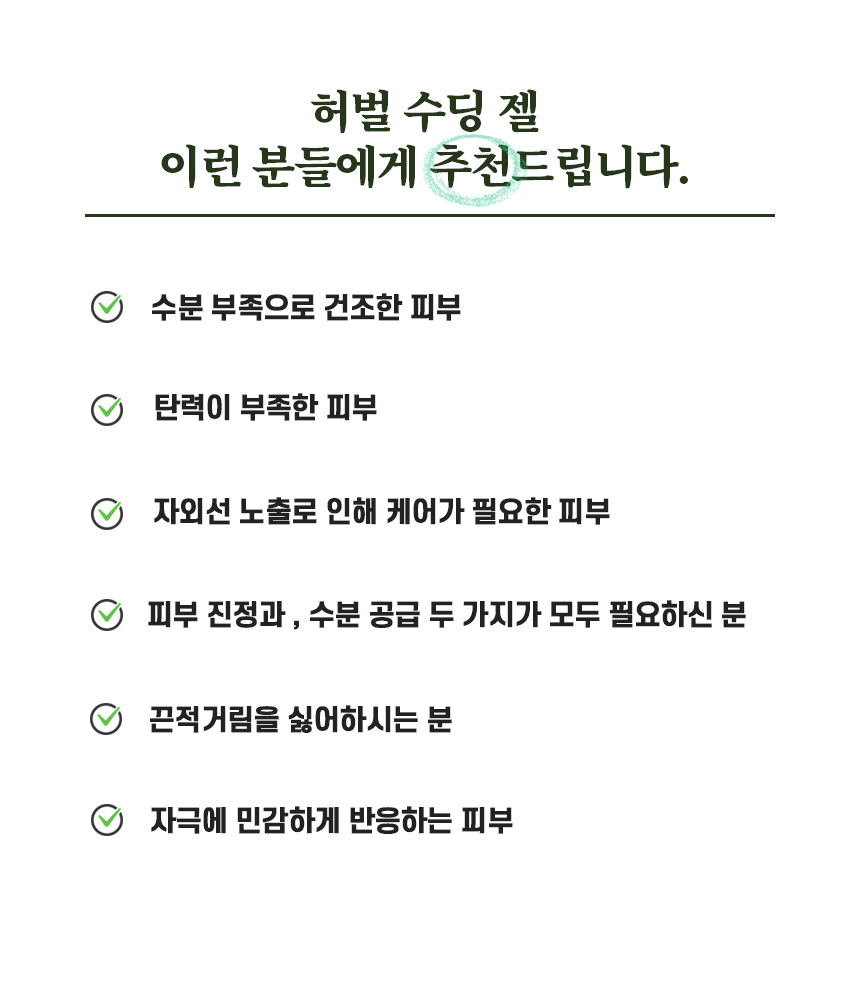 피부진정, 수분유지, 자외선 노출로 인한 칙칙한 피부, 건조한 피부에 수분과 영양을 동시에 피부를 부드럽게 가꾸어줍니다.